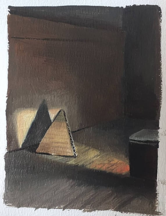 So called 'worthless' pieces of cardboard play the main role in this series of oil paintings. By the use of light and traditional compositions, these worthless leftovers gain a new value.