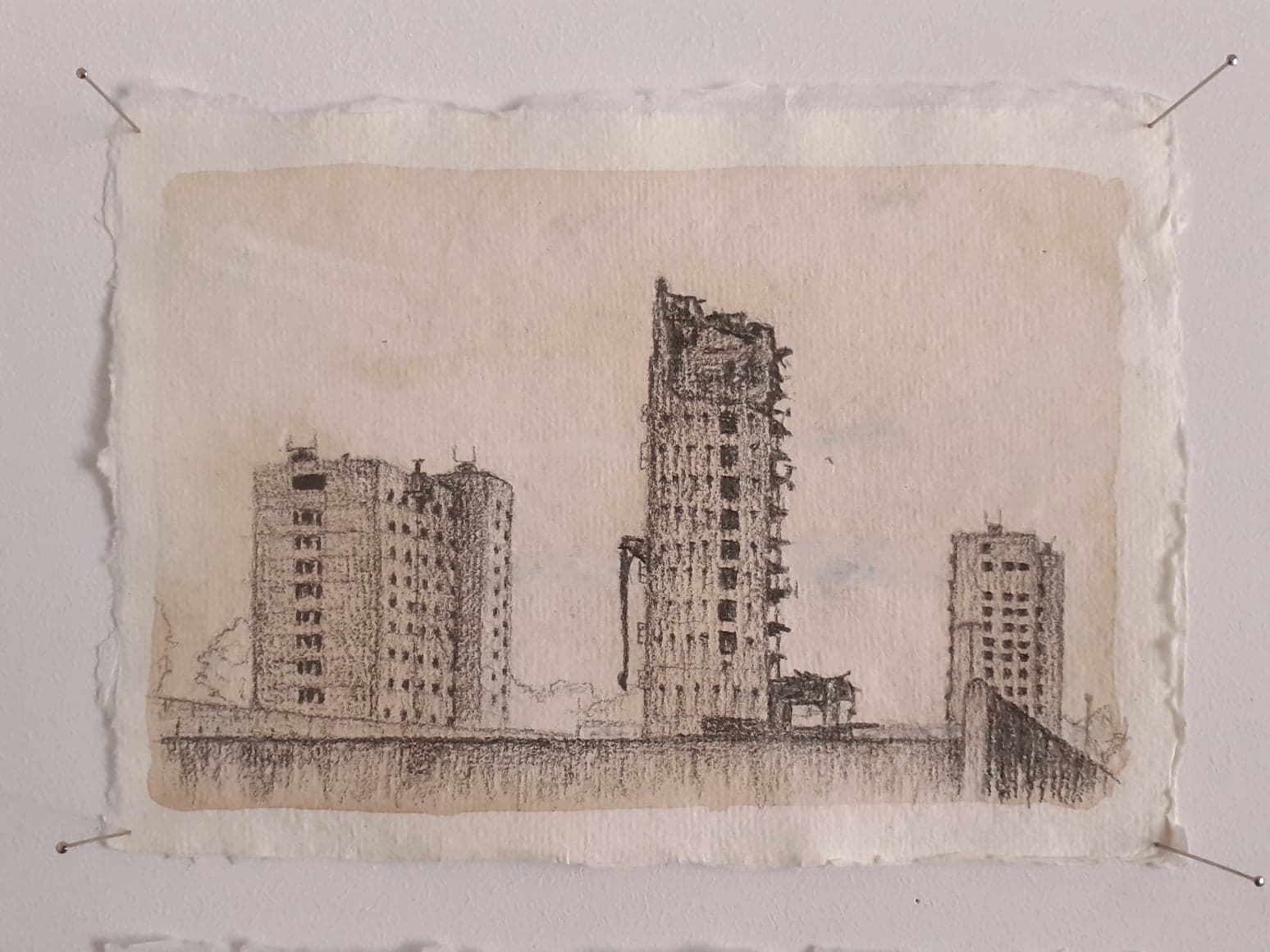 "Deze expositie in het Posthotel (Wetteren) gaat over wat er ooit geweest is. Over hoe je fantasie geprikkeld wordt wanneer je iets ziet wat beschadigd, vervallen of vergaan is. En over hoe dat vaak suggestiever is dan iets wat heel is."
